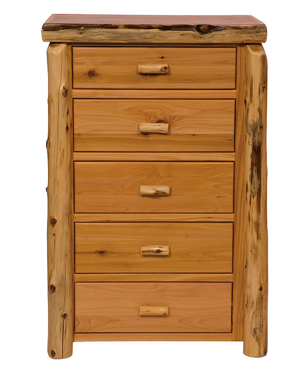 Six spacious drawers provide ample storage for clothing and everyday essentials, each finished with solid log pulls that reinforce its handcrafted design. Sturdy log legs offer dependable support, while cedar’s natural resistance to wear and moisture makes this dresser ideal for daily use.