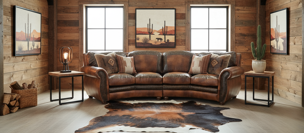 Heritage Ranch Chaparrel Western Curved Four Seat Sectional Sofa