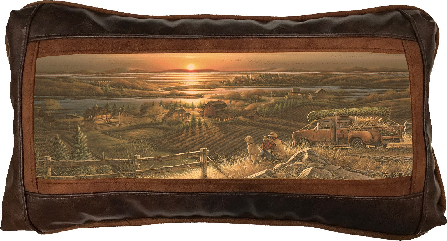 Sweetwater pillows have found their place in lodges, hotels, national parks, and countless homes throughout the country. This widespread presence speaks to the quality and appeal of their pillows, as they effortlessly enhance various settings. When it comes to our Frame Western Pillows, we employ a distinctive printing technique on chamois colored leather, imparting the images with a warm, aged appearance. The frame surrounding the image, along with the welt and back of the pillows, is meticulously crafted using Faux Suede, ensuring both durability and elegance. As for the front border, you have the option to choose between Faux Leather and Genuine Leather, allowing you to personalize your pillow according to your preferences. Please do not place pillow in direct sunlight to prevent leather from fading.
