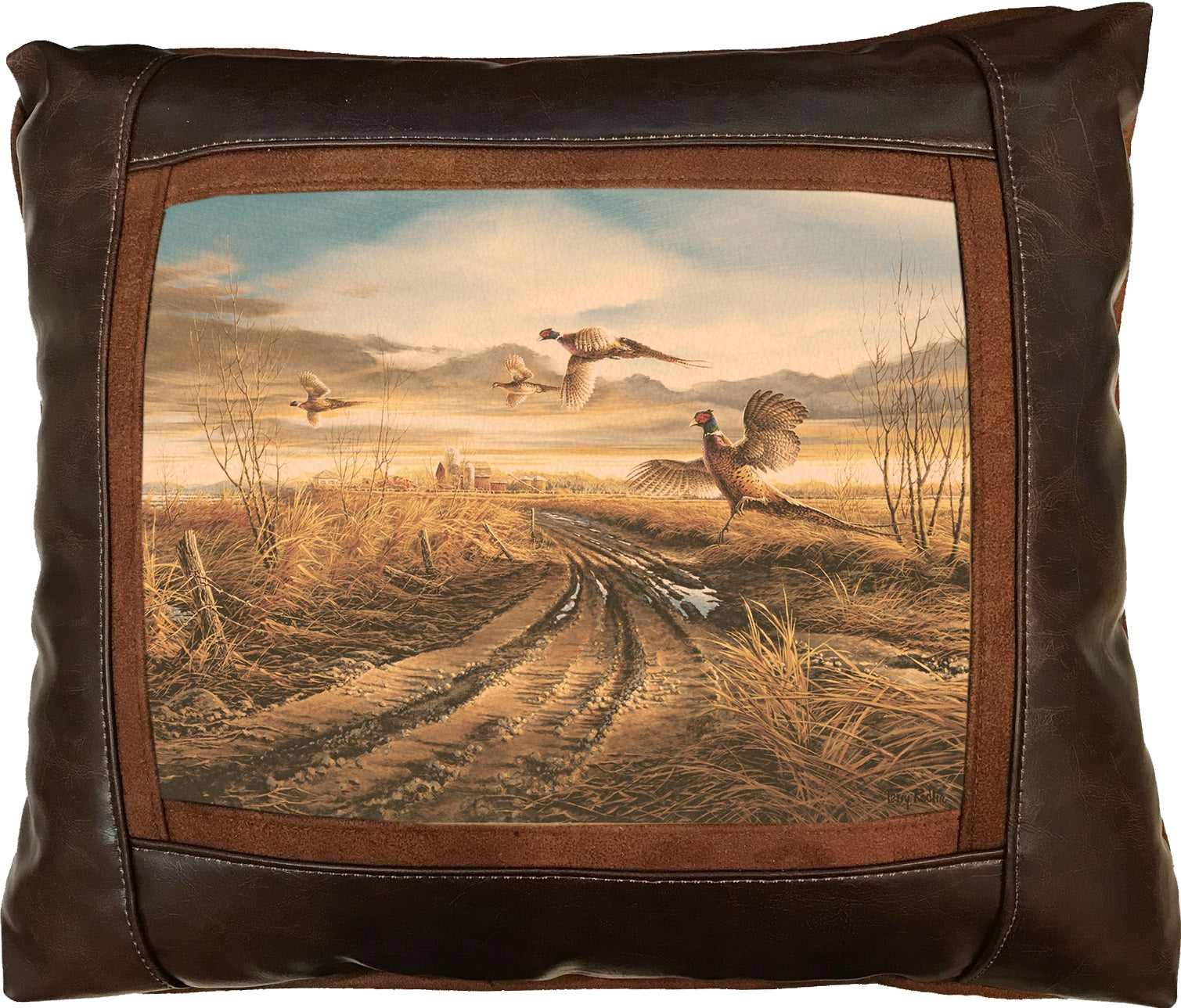Sweetwater pillows have found their place in lodges, hotels, national parks, and countless homes throughout the country. This widespread presence speaks to the quality and appeal of their pillows, as they effortlessly enhance various settings. When it comes to our Frame Western Pillows, we employ a distinctive printing technique on chamois colored leather, imparting the images with a warm, aged appearance. The frame surrounding the image, along with the welt and back of the pillows, is meticulously crafted using Faux Suede, ensuring both durability and elegance. As for the front border, you have the option to choose between Faux Leather and Genuine Leather, allowing you to personalize your pillow according to your preferences. Please do not place pillow in direct sunlight to prevent leather from fading.