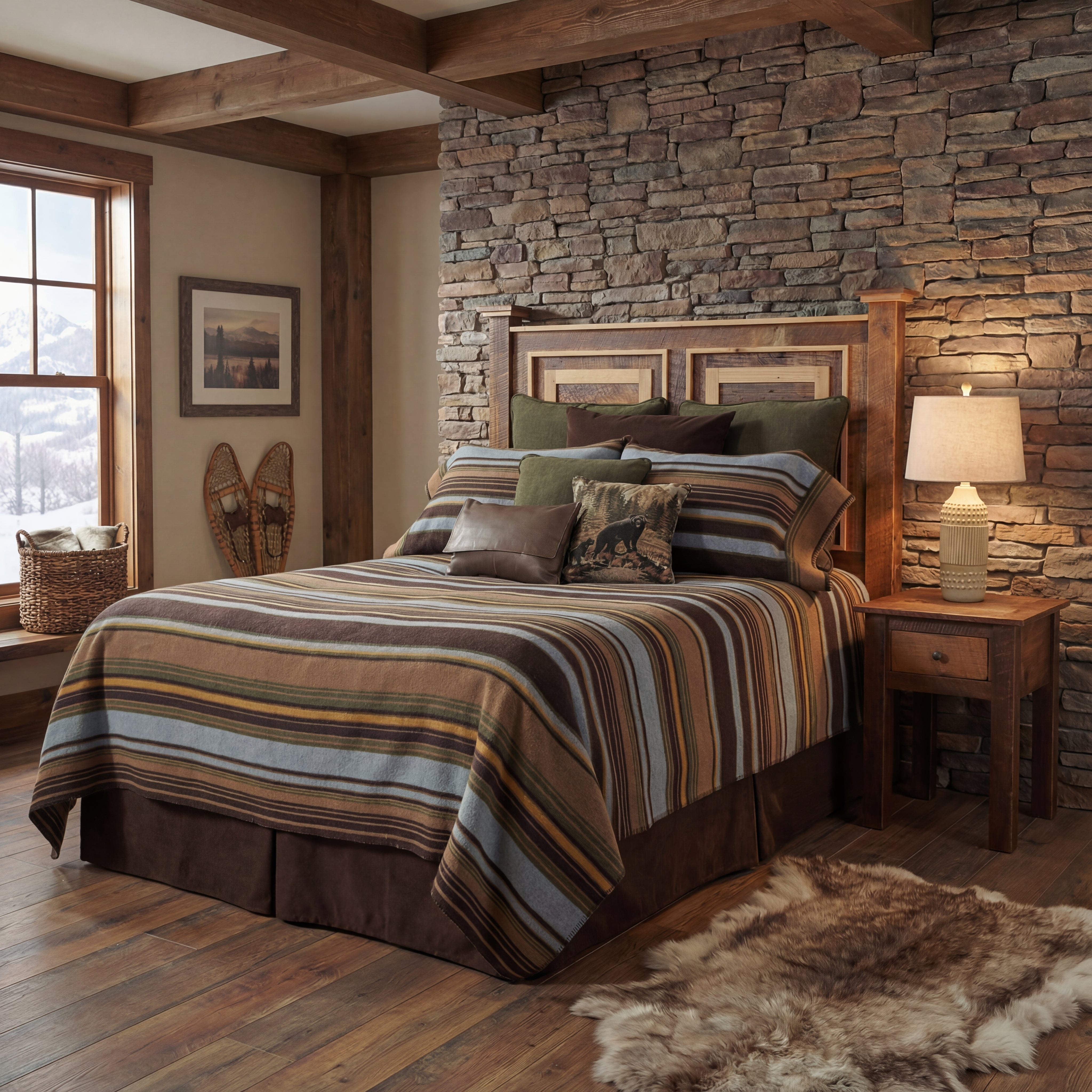 Wooded River Hudson Earth Bedspread Set brings lodge character, texture, and a finished designer look to the bedroom.