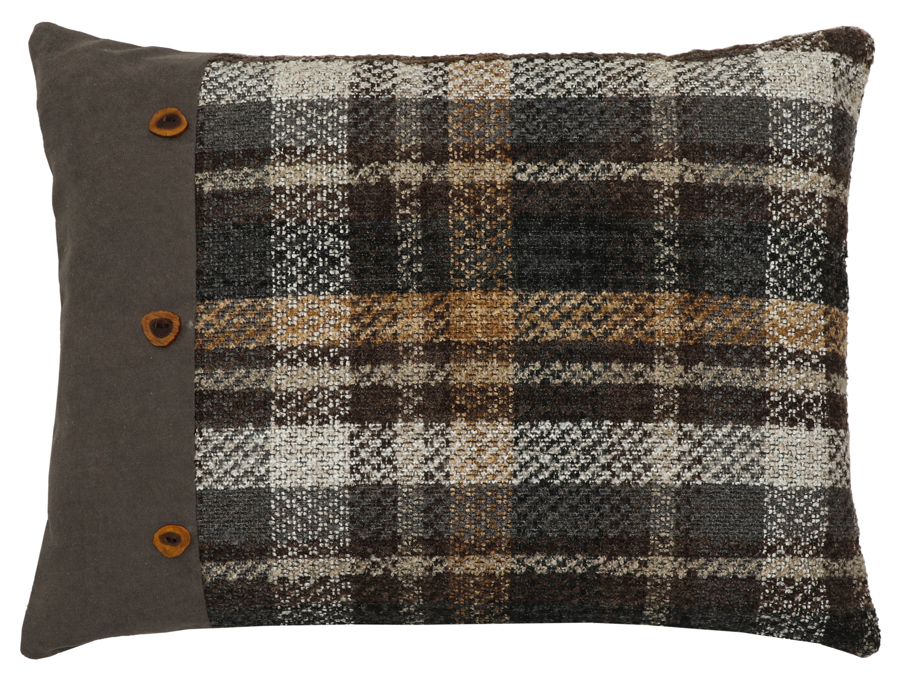 Material: Sham: Whistler Sable(43% Acrylic, 41% Polyester, 16% Cotton), Band - Back Country Ashen, Sliced Antler Buttons, Zipper Closure