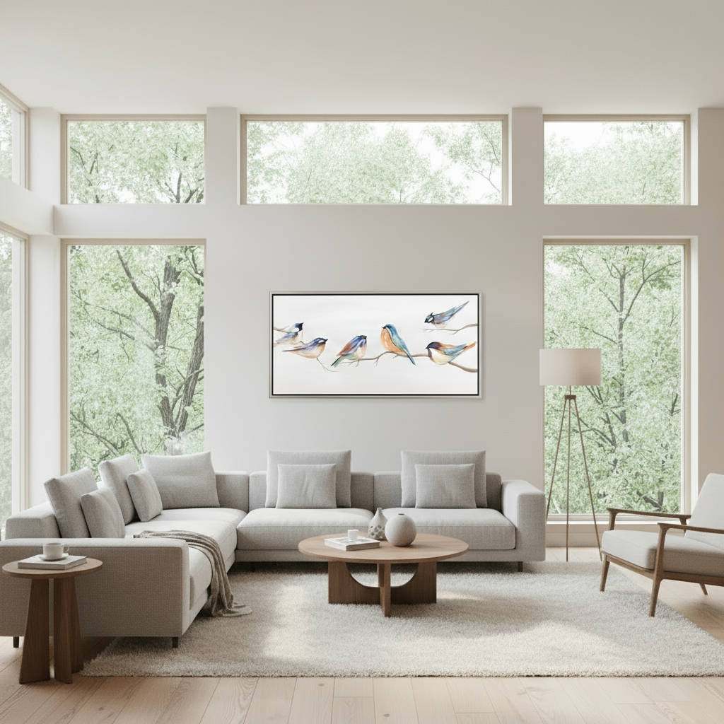 Abstract art piece with a gradient of gray, brown, and beige tones in a black frame.