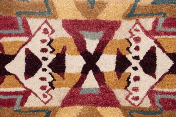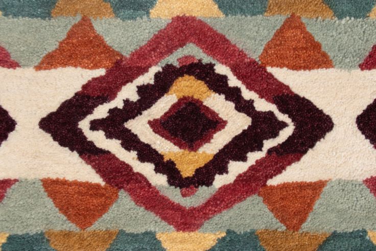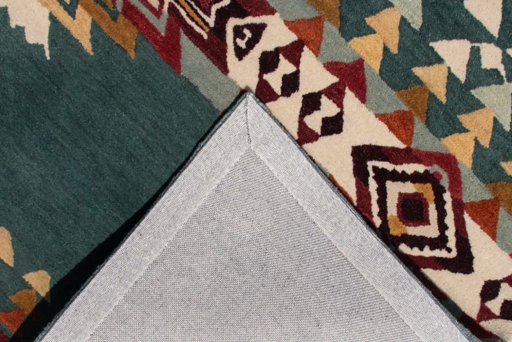The Highland Peak Teal Rug from the Pendleton® Classic Collection blends timeless Southwestern style with modern color. Featuring bold geometric patterns in warm earth tones against a deep teal background, this rug brings warmth and character to any space. Hand-tufted from premium wool, it offers lasting durability and a soft, luxurious feel underfoot—perfect for adding a touch of heritage and artistry to your home. The Pendleton® Classic Collection, inspired by Pendleton® trade blanket designs, distinguishes itself with the hand-tufted construction method, in contrast to the hand-knotted Pendleton® Reserve. Utilizing high-quality New Zealand wool and Swiss chrome dyes, the wool is skillfully inserted into a cotton backing using a handheld yarn gun, latexed, and secured with a robust backing. To enhance the clarity of their stunning designs, the rich and colorful rugs undergo a final shearing of the pile. Elevate your spac with our exceptional southwestern rug.