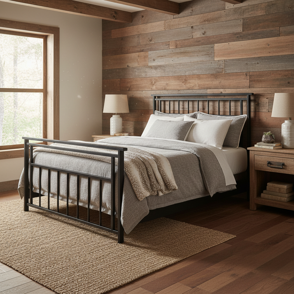 With bold lines and crisp angles, the Aspen iron bed becomes the centerpiece of the room, turning the familiar rail-style head and footboard into something more chic and memorable. Slender rectangles run along the top of each piece, culminating in a wide block in the center of the footboard. The clean styling of this piece eschews caps or stylized feet, allowing the silhouette of this iron bed to effortlessly flow into the surrounding decor. Standard metal frame includes three metal slats - box spring recommended. This bed can be used with adjustable mattress sets by removing the three center slats. All standard bed frames are finished in matte black. Made in the USA by Wesley Allen, the leading manufacturer and designer of expressive and eclectic iron furniture. Explore the full Wesley Allen Collection to discover more iron bed options that elevate your bedroom with timeless style and durability.