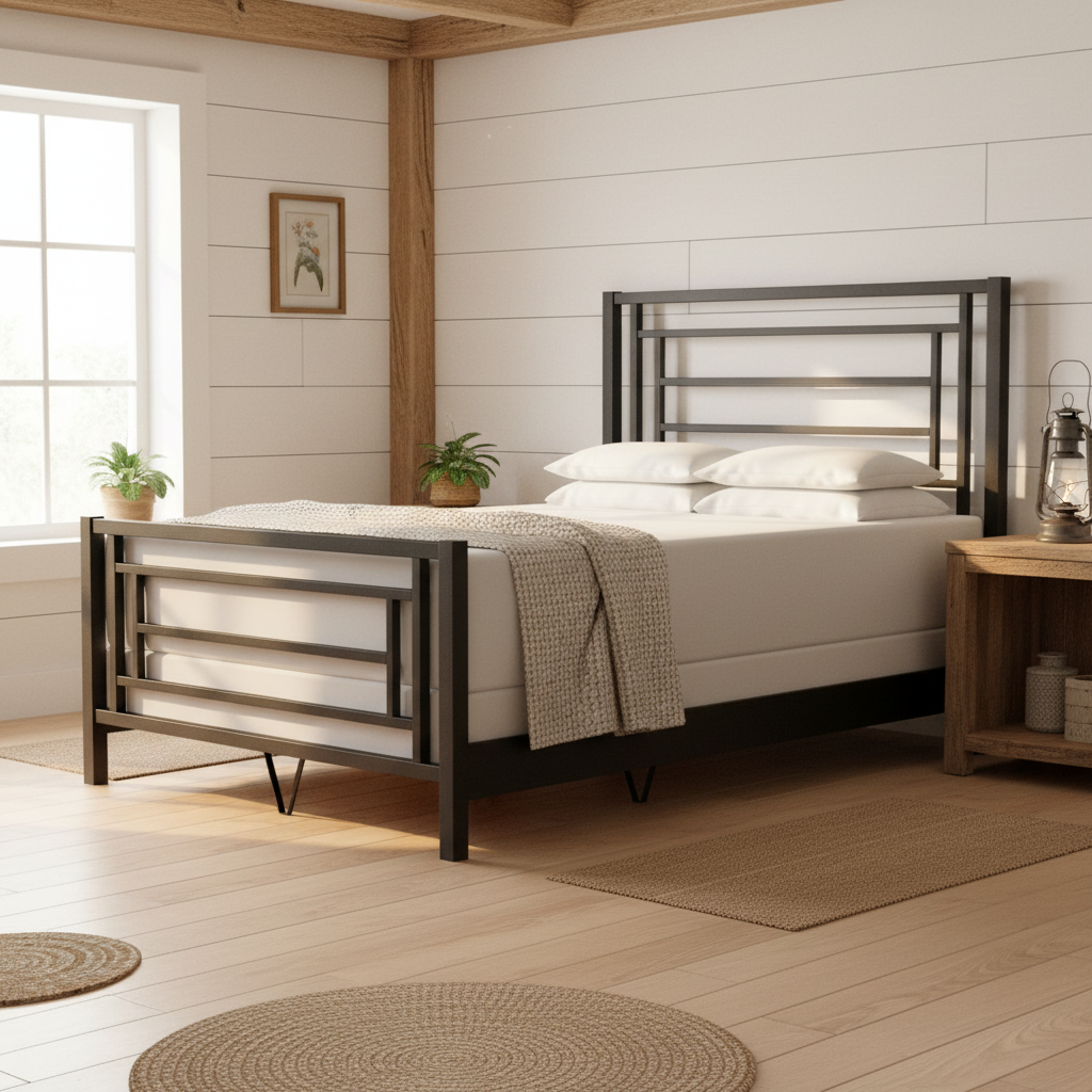The Sunset iron bed blends classic bedroom idealism with classy design, fermenting unparalleled style and taste. A highly unique custom designer furniture selection, Sunset identifies with morning energy and nighttime allure with its rich, tasteful, and well-grounded hues. Adaptive yet bold, flexible but iconic, the bed effectively captures the intrinsic beauty of the past. Standard metal frame includes three metal slats - box spring recommended. This bed can be used with adjustable mattress sets by removing the three center slats. All standard bed frames are finished in matte black. Made in the USA by Wesley Allen, the leading manufacturer and designer of expressive and eclectic iron furniture. Explore the full Wesley Allen Collection to discover more iron bed options that elevate your bedroom with timeless style and durability.