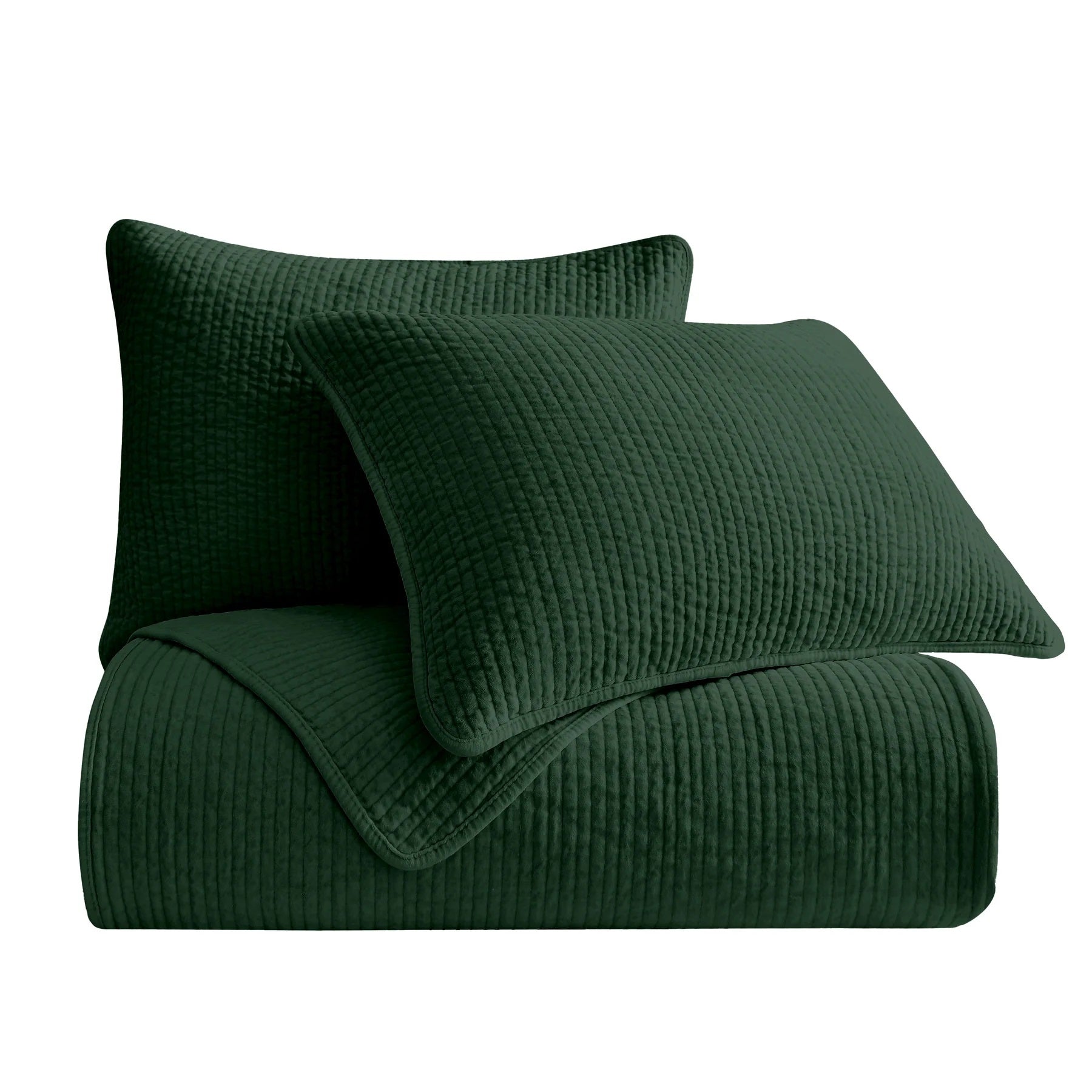 Stonewashed Emerald Cotton Velvet Quilt Set