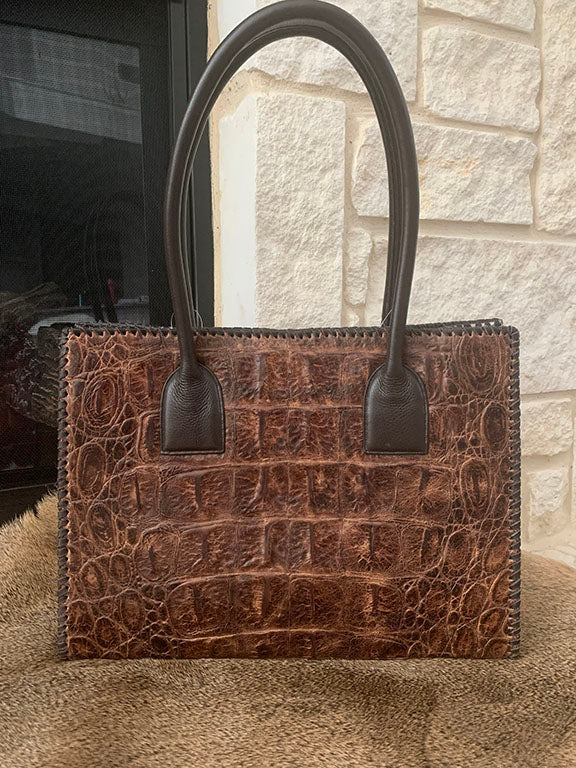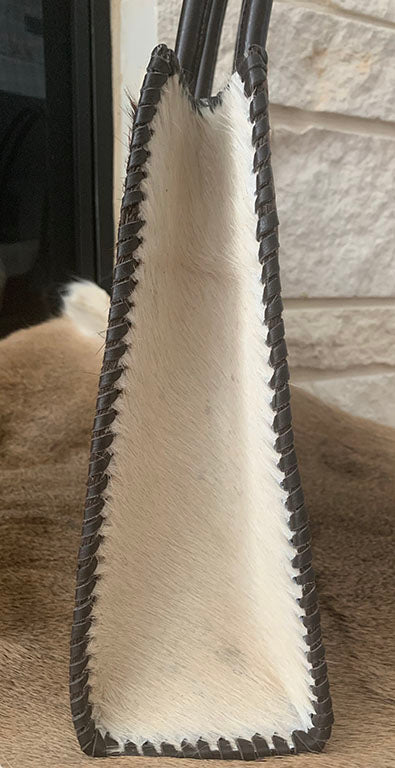 This lovely handbag features genuine hair on hide on the front and tan croco cognac embossed leather on the back. The straps are smooth dark brown leather with whipstitch details. Strap length is perfect for over shoulder or carry. Due to lighting used during photography, actual finishes may vary from imagery. Click Here for additional Juan Antonio bag and wallet options.