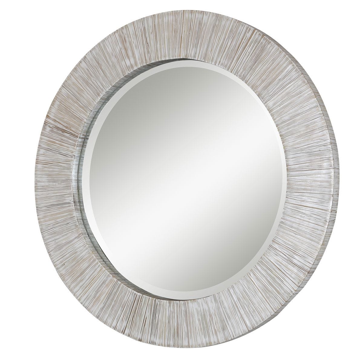The Timberline Round Mirror brings natural texture and quiet strength to a room. Framed in genuine bamboo, its wide band is finished in a heavily rubbed whitewash that softens the wood while allowing the organic grain and subtle tonal variation to show through. The result feels weathered, relaxed, and perfectly at home in a mountain lodge or rustic retreat.
