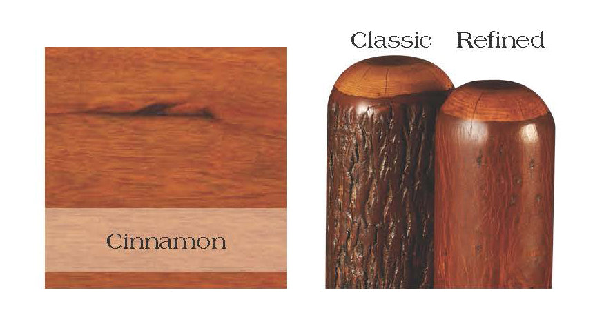 Our hickory log gun cabinet features locking upper and lower cabinets, lighting in the upper cabinet and inset drawer fronts and doors. Choose between two styles of logs in five stains. Classic (with sanded bark) or Refined (with bark removed). All hinges are concealed European style for a clean uncluttered look and space for to store and display up to 8 firearms. Includes one adjustable shelf for each side of the lower cabinet. It is handcrafted with bark on for the most traditional style. Each hickory log is kiln dried to a specific moisture content and finished with a coat of clear catalyzed lacquer for extra durability. Because every log is unique, no piece of hickory log furniture will be identical. Explore the full range of the