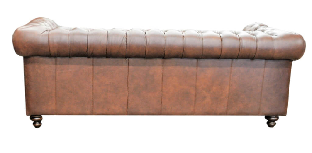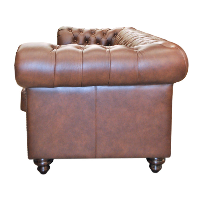 Infuse your living space with classic Western elegance through the Winchester Western Tufted Leather Two Seat Sofa. Designed in the famed Chesterfield style, this sofa showcases meticulous hand-tied deep button tufting, elegantly rolled arms, and premium top-grain leather upholstery. Its dark brown hue accentuates the leather's natural texture, creating a cozy, rugged ambiance ideal for ranch-inspired homes, rustic cabins, or traditional Western decor. Ask us about custom options!