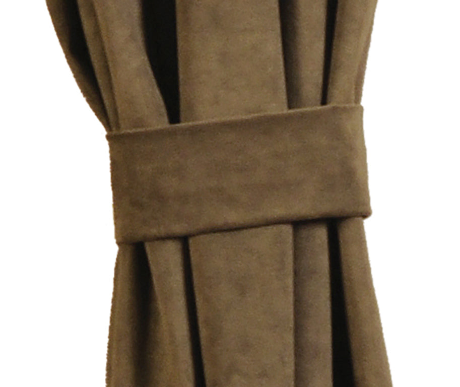 Olive fabric drape set includes 2 panels and 2 tiebacks. Optional Cabin Bear valance is sold separately. Handcrafted by skilled sewers in the USA.